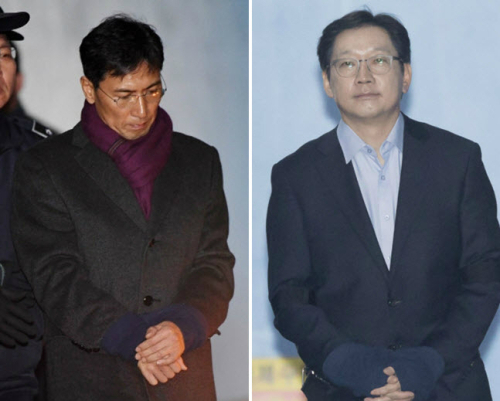 | 안희정 전 충남지사(왼쪽)와 김경수 경남지사가 각각 여비서 성폭행, 온라인 댓글 조작 혐의로 재판에서 유죄 선고를 받고 법정구속되고 있다. 세계일보 자료사진 |