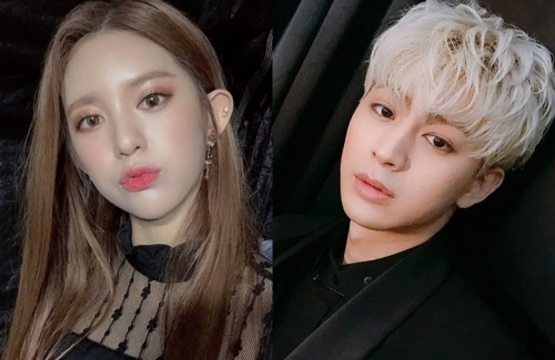 아이콘 송윤형(오른쪽) 측이 모모랜드 멤버 데이지(왼쪽)와의 열애설을 부인했다.