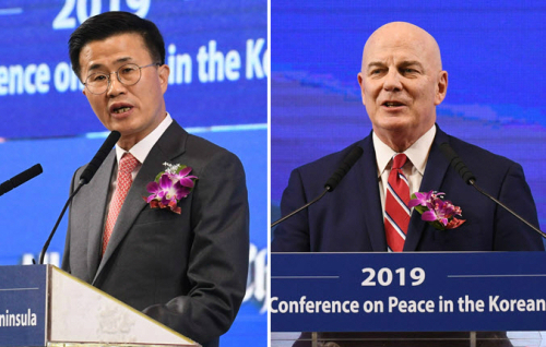 이번 콘퍼런스는 27∼28일 베트남 하노이의 2차 북·미 정상회담을 앞두고 열려 북한 비핵화 협상 전망에 대해 관심이 집중됐다. 2시간 동안 참석자들의 시선이 쏠린 것은 북한 비핵화 협상에 직접 참여한 크리스토퍼 힐 전 6자회담 미국 측 수석대표와 조지프 디트라니 전 6자회담 미국 측 차석대표의 발언이었다. 외국에서 온 참석자들은 디트라니 전 차석 대표의 북한 비핵화 협상 전망에 대해 하나라도 놓치지 않겠다는 듯 꼼꼼하게 메모하며 집중했다. 디트라니 전 차석 대표가 “주한미군의 지위가 흔들려서는 안 된다”고 힘주어 말하는 대목에선 박수가 나오기도 했다.