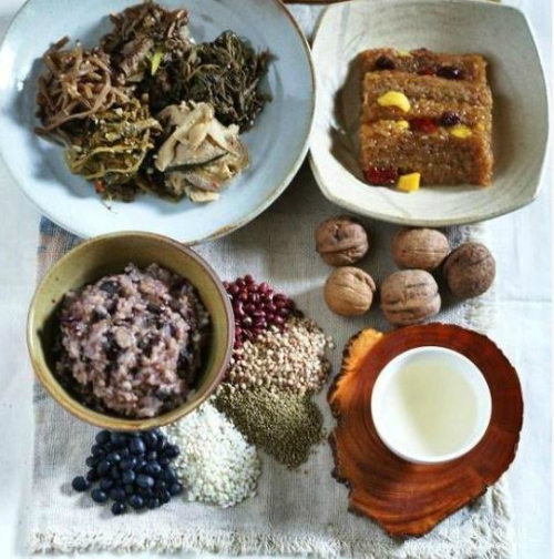 19일 정월대보름을 맞아 이날의 유래와 오곡밥, 부럼 등 절식(節食)에 누리꾼의 관심이 뜨겁다. 사진 뒷줄 왼쪽부터 시계 방향으로 나물, 약밥, 부럼, 귀밝이술, 오곡밥