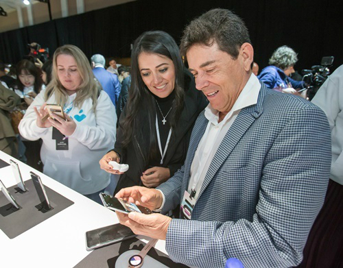 | 20일(현지시간) 미국 샌프란시스코에서 열린 '삼성 갤럭시 S10 언팩 2019'에서 관람객들이 갤럭시 S10을 체험해보고 있다. 삼성전자 제공. |