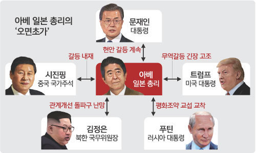 미·중 무역전쟁이 종전 국면에 진입하면서 이번에는 아베 신조(安倍晋三) 일본 총리가 대외적으로 ‘오면초가(五面楚歌)’ 위기에 직면할 가능성이 커지고 있다.