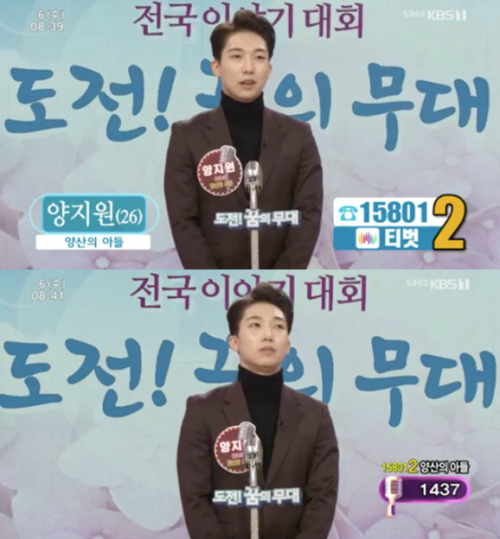 6일 방송된 KBS1 '아침마당'은 '도전 꿈의 무대'로 꾸며졌다. 이날 가수 양지원은 '도전! 꿈의 무대' 편에 도전자로 출연하며 독특한 이력을 밝혀 눈길을 끌었다.