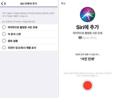 시리(Siri) 단축어 기능을 통해 사용자들은 아이프린트 앱에서 ▲마지막 촬영 사진 인쇄 ▲문서 스캔 ▲캡처 실행 ▲프린터 잉크·토너 잔량 표시 등 4가지 기능을 신속하게 사용할 수 있다. 앱 시작 화면의 '시리 단축어 추가(Add Siri Shortcuts)' 메뉴를 누른 후 4가지 기능 중 하나를 선택해 사용자가 직접 음성 명령어를 설정하면 된다.