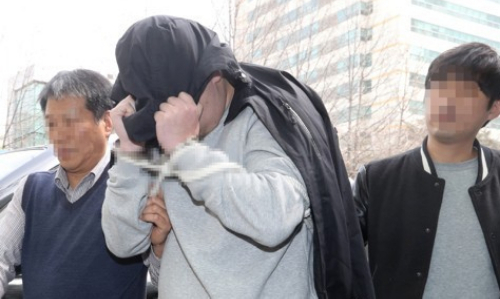 점퍼로 머리부터 어깨까지를 덮어 얼굴을 완전히 가린 김 씨는 경찰서를 나온 지 1분도 채 안 돼 경찰 호송차에 올랐다.