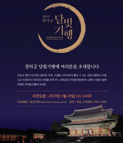 옥션티켓이 20일 고궁의 밤을 만끽할 수 있는 ‘2019 창덕궁 달빛기행’ 상반기 입장권 판매를 시작했다.