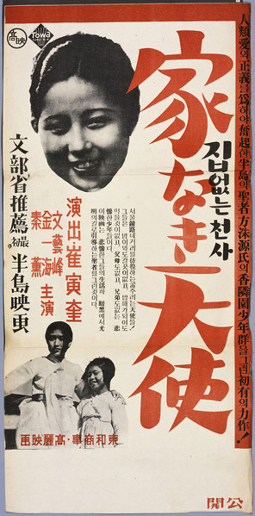 2004년 중국 전영자료관에서 발굴된 ‘집 없는 천사’(1941년·최인규 감독)는 이런 ‘협상’의 시도와 좌절을 보여주는 흥미로운 사례다. 일본과 만주 등을 배급시장으로 고려해 야심차게 활동하던 고려영화협회가 제작한 영화로서 사실상 민간 영화사가 만든 마지막 작품들에 속한다. 이런 수출(이출)을 염두에 두고 제작된 과거 영화들이 ‘나그네’(1937년·이규환 감독)나 ‘한강’(1938년·방한준 감독)처럼 향토색(조선 컬러)을 내세우는 전략을 취했던 데 비해, ‘집 없는 천사’는 당시 유행하던 장르영화의 틀을 빌리면서 내선일체 이데올로기를 삽입하는 전략을 취했다. 방수원 목사의 부랑아 수용시설인 향린원(香隣園) 관련 실화를 영화화한 이 작품은 소비에트의 ‘인생 안내’(1931년), 미국의 ‘데드 엔드’(1937년), 일본의 ‘미카에리의 탑’(みかへりの塔·1941년) 등 당시 인기 있던 ‘소년영화’ 장르에 기대어 마케팅되었다. 여기에 방탕과 탐욕에 젖어있는 부랑아들이 각성해 황국신민으로 거듭나기를 맹세한다는 결말을 덧붙임으로써, 일본 제국의 시장을 효과적으로 공략하려고 했다. 시나리오를 일본인 니시키 모토사다(西龜元井)에게 맡긴 것도 이를 염두에 두어서였다. 고려영화협회의 수완가 이창용이 밝힌 바, 이 영화는 “거리의 부랑아를 소재로 이들을 잘 교육하면 훌륭한 사람이 되어 국기를 향해 경례하고 충량스러운 일본 국민이 되어가는 상태를 내지(일본)에 보여”주려는 것이었다. 즉 전쟁기 식민지의 민간 영화회사가 제국의 인프라를 통해 수익을 창출하려고 할 때 마련할 수 있는 전략의 정점을 보여준다고 할 수 있다.