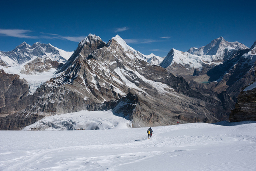 지구 온난화로 인해 에베레스트 산의 만년설과 얼음이 녹고 있다.