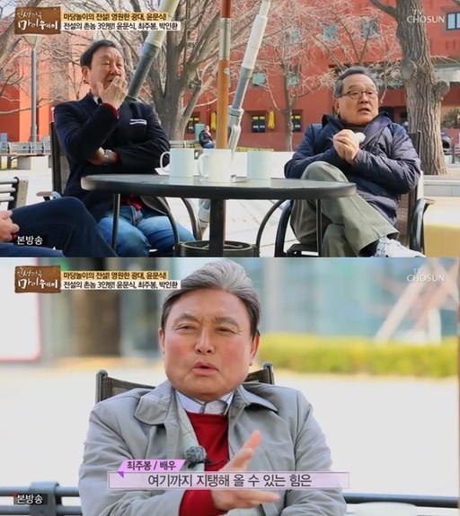이날 방송에 출연한 최주봉은 “우린 아직 노년이 아니다“라고 말했고, 옆에 있던 윤문식은 ”우리 합치면 200살이 훌쩍 넘어 이 사람아“라고 타박해 웃음을 자아냈다.