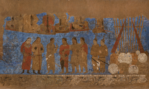 7세기에 제작된 것으로 추정되는 이 그림에서 고구려 사신 추정 인물 2명은 새 깃털을 꽂아 만든 ‘조우관’을 머리에 쓰고 고리 손잡이가 달린 칼인 ‘환두대도’를 허리에 찼다.