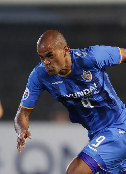 가와사키는 자신들의 홈구장에서 열린 4차전에서 전 경기 설욕을 위해 적극적 공격으로 나섰고, 결국 울산은 전반 7분 만에 고바야시 유(32)에게 선제골을 내줬다. 이후로도 가와사키는 파상공세를 이어갔고, 울산은 수비 중심 역습 전략과 세트피스로 맞서며 버텨나갔다. 그리고 이 과정에서 동점골이 나왔다. 전반 17분 박용우(26)가 코너킥을 방향만 바꿔 골로 만들어냈다. 여기에 전반 31분에는 에이스 주니오(33·사진)의 골까지 터졌다. 주니오는 김인성(30)의 패스를 받아 가와사키 골키퍼 정성룡(34)과의 일대일 찬스를 이겨내고 오른발 슛으로 추가골을 꽂았다.