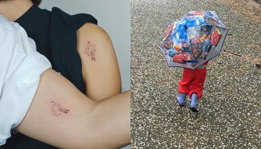 특히 이 부부가 새긴 문신은 아들이 우산을 쓰며 걷는 모습을 표현해 팬들의 눈길을 끌었다.