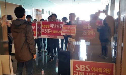 노조는 윤 회장과 SK그룹 3세 최영근 씨가 함께 만든 후니드라는 회사가 SBS 용역 업무를 싹쓸이하고, SBS 케이블 채널 제작도 독점하고 있다고 주장했다.