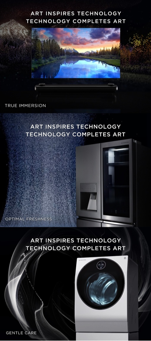 이 캠페인은 북미를 시작으로 독일, 호주 등 LG 시그니처를 론칭한 주요 국가에서 순차적으로 이어간다. 캠페인 슬로건은 ‘기술에 영감 주는 예술, 예술을 완성하는 기술’이며, 3편의 영상을 통해 TV·냉장고·세탁기 각각의 본질인 빛·공기·물을 LG 시그니처가 어떻게 이해하고 기술적으로 승화시켜 동작하는지를 보여준다.