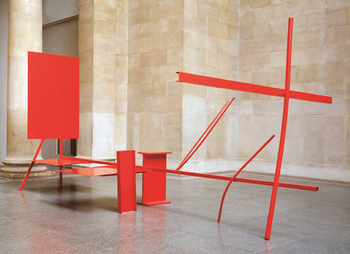 이 작품에서 카로는 관계와 균형을 강조했다. 수직적이며 수평적인 구조로 작품 안의 큰 틀을 만들고, 관계와 균형을 채워 넣었다. 왼쪽의 사각형 철판, 작품 전체를 가로 지르는 긴 철봉, 그 사이 H 형태의 물체, 그리고 비스듬히 세워진 철사 등이 서로 다른 각도로 만나면서 다양한 관계가 만들어졌다. 카로는 그것들이 서로 긴장관계를 유지하면서 힘과 에너지의 균형을 이루게 했고, 그 위에 빨간색을 칠해 작품 전체의 조화와 통일성도 만들어냈다. 빨간색을 보고 아침에 떠오르는 붉은 해를 연상할 수도 있지만, 그것보다 카로가 더 강조한 것은 작품 안의 관계와 균형이다.