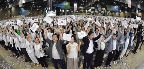 이기성 가정연합 한국회장이 낭독한 ‘희망전진대회 대표자’ 명의의 ‘고천문’(告天文)은 이런 염원을 담은 것이었다. 대표자들은 “2032년 제35회 하계올림픽 서울·평양 공동유치를 한마음으로 기원하오니 한반도에 항구적 평화통일이 앞당겨질 수 있도록 역사하여 주시기를 하늘 앞에 간절히 고한다”며 “고난과 눈물의 땅이 화해와 평화의 땅이 되고, 이념과 체제와 문화의 다름이 하나둘 풀어져 다가올 태평양문명권 시대의 중심국가로 신통일한국이 우뚝 서게 해 달라”고 기도했다. 또 “동방의 등불 되어 평화의 밝은 빛으로 온 누리를 비추고, 창조주 하늘부모님의 꿈이요 인류의 소원인 항구적인 평화세계를 이루게 해 달라”고 기원했다.