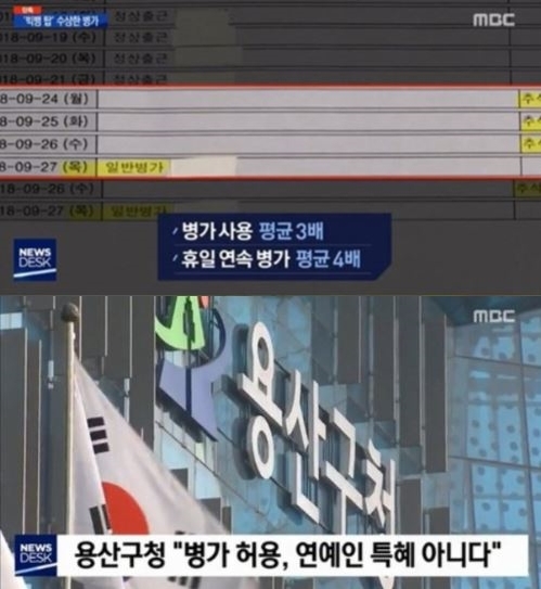 지난 3월19일 MBC ‘뉴스데스크’에서는 사회복무요원으로 근무 중인 탑이 징검다리 연휴에 맞춰 병가를 사용했다며 특혜 의혹을 제기했다.
