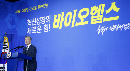 문 대통령은 “지난해 바이오시밀러 세계시장의 3분의 2를 국내기업이 점유하고 있고, 바이오 의약품 생산량도 세계 두 번째 규모”라며 “지난해에만 48억 달러의 신약기술을 해외에 수출했고 의약품과 의료기기 수출도 144억 달러로 매년 20%씩 늘어나고 있다. 지금이 우리에게는 바이오헬스 세계시장을 앞서갈 최적의 기회”라고 강조했다.
