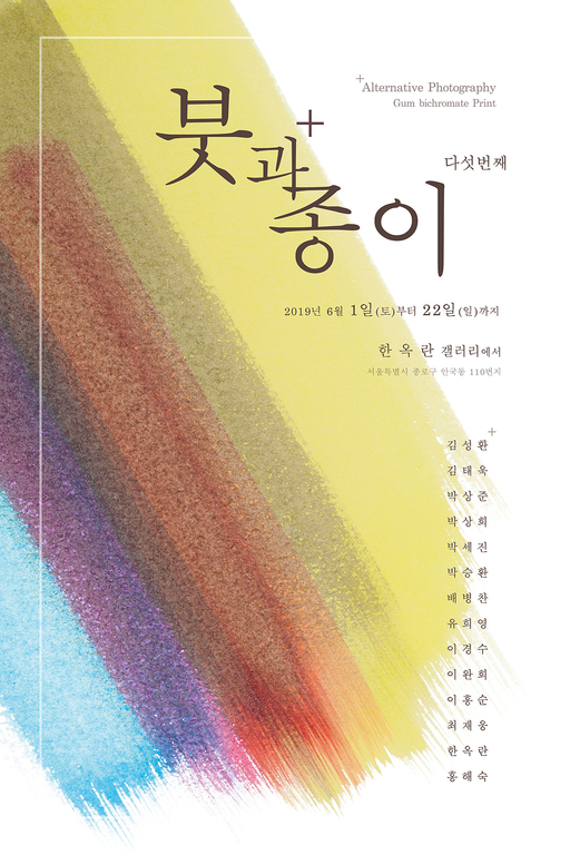 ‘붓과 종이, 다섯 번째’ 전시가 열린다. 개성있는 14명의 사진작가(김성환, 김태욱, 박상준, 박상희, 박세진, 박승환, 배병찬, 유희영, 이경수, 이완희, 이홍순, 최재웅, 한옥란, 홍해숙) 로 구성된 얼터네이티브 사진(Alternative photography)그룹전은 4도 네거티브 필름에 4색 수채화 잉크를 사용하여 다층 검 프린트방식으로 제작된 컬러사진 작품이다.