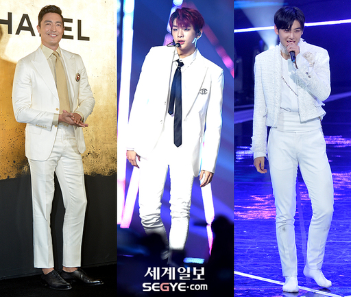 배우 다니엘 헤니, 가수 강다니엘, 아이돌그룹 아스트로의 차은우가 각각의 개성이 담긴 화이트 수트룩을 선보였다.