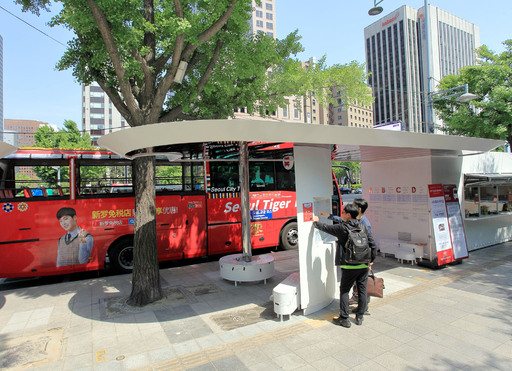 ‘시티투어 터미널’은 밝은 백색 컬러와 컬러 미러 스테인리스 소재를 사용해 사람들의 호기심을 유발하고 시각적 즐거움을 선사하며, 교통 및 관광정보를 제공하는 디지털 인포메이션 디스플레이(DID)를 도입하는 등 사용자 편의성을 높였다. 새롭게 바뀐 ‘시티투어 터미널’ 매표소에서 관광객들과 시민들이 티켓을 구매하고 있다.