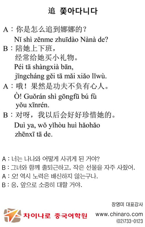 [차이나로 중국어학원] 쫓아다니다 입력 : 2019-06-23 19:10:14 수정 : 2019-06-23 19:10:14 구글 네이버 유튜브 Copyright ⓒ 세계일보. 무단 전재 및 재배포 금지 세계일보 -