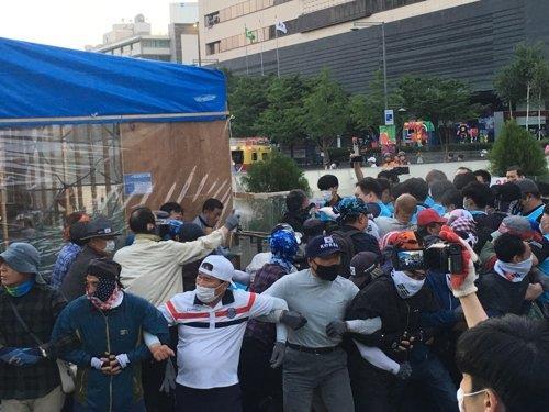 시는 이날 "불법 천막에 대한 행정대집행을 실시했다"며 "애국당이 사전협의 없이 광장을 무단으로 점유한 것은 명백한 불법행위로 용인될 수 없다"고 밝혔다.