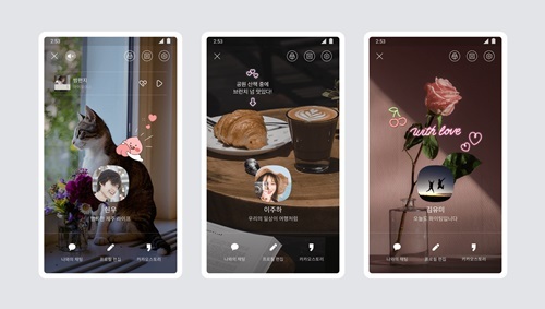 이 밖에 디데이 뱃지, 텍스트 말풍선, 스티커, 배경 효과 등 다양한 비주얼 아이템을 제공한다.