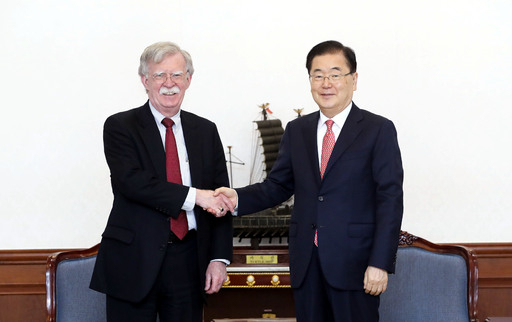 일본에 이어 한국을 방문한 존 볼턴 미국 백악관 국가안보회의(NSC) 보좌관이 24일 정의용 청와대 국가안보실장, 정경두 국방부 장관, 강경화 외교부 장관과 연이어 만났다. 한·일 갈등, 호르무즈 해협 안보협력, 북핵 실무협상 등 양국 현안이 두루 논의된 것으로 알려졌다. 볼턴 보좌관은 올해 하반기 재개 예정인 방위비 분담금 협상도 의제로 꺼냈다.