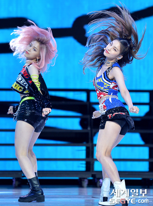 걸그룹 있지 류진(왼쪽)과 예지가 29일 오후 서울 용산구 한남동 블루스퀘어 아이마켓홀에서 진행된 첫 미니앨범 'IT'z ICY(있지 아이씨)'의 발매 기념 쇼케이스에 참석해 열띤 공연을 펼치고 있다.