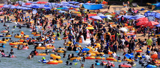 장마가 끝나고 본격적인 더위가 시작된 29일 속초해수욕장이 피서객들로 붐비고 있다.
