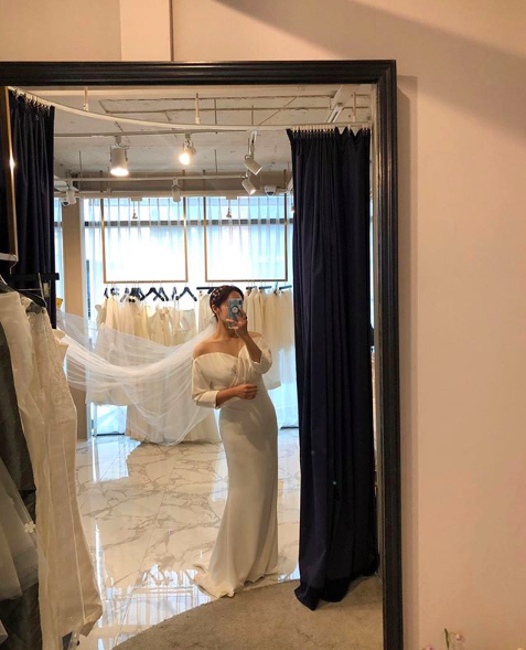 공개된 사진 속 박지윤은 웨딩드레스를 입고 있다. 박지윤의 아름다운 외모에 시선이 간다.