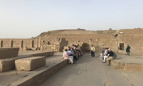 신전에서 내려다보면 강변에 정박한 크루즈선들이 보인다. 많은 크루즈 선들이 나란히 정박해 있고 시간 간격을 두고 신전을 방문한다. 크루즈에서 내린 관광객들이 현장학습을 나온 듯 가이드 설명에 귀 기울이고 있다. 신전 벽면에는 신들의 부조가 장엄한 신화를 들려주고 있다. 가이드를 따라 신전을 방문하고 지금까지 보아온 신전과는 다른 악어와 매의 벽화를 따라 과거로의 시간을 더듬는다.