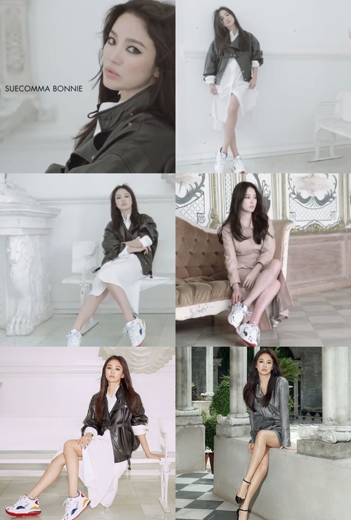 슈콤마보니는 “19FW시즌 ‘SHINE ON ME’ 송혜교”라는 글과 함께 “여왕의 스니커즈”라는 문구와 송혜교의 화보를 공개했다.