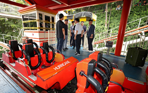 A씨는 탑승객의 안전띠 착용과 안전바 작동 여부를 확인하는 업무를 맡았다. 규정상 안전요원이 마지막 열차까지 확인하고 운전실까지 되돌아오면 열차를 운행시켜야 하지만 관행적으로 안전요원은 열차에 매달려 있다가 운행이 시작되면 10 앞 운전실 주변에서 뛰어내린다고 경찰은 전했다.