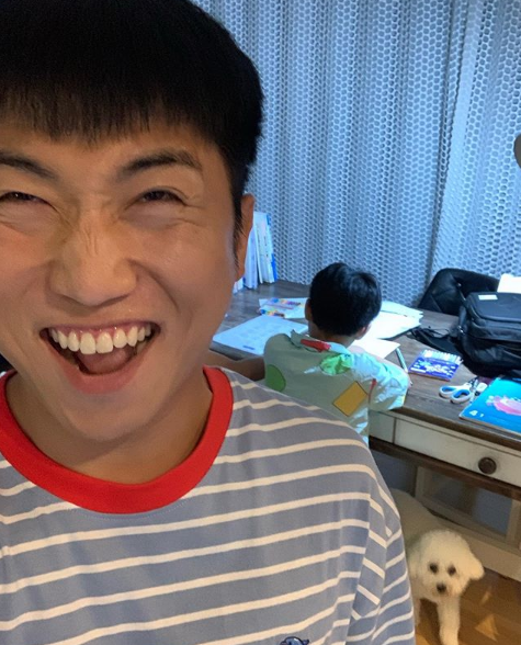 개그맨 유세윤(사진 왼쪽)이 아들의 개학을 앞두고 환한 미소를 지었다.