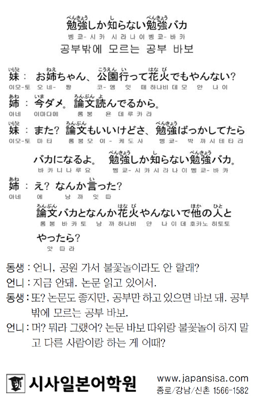 [시사일본어학원의 초단기 일본어 회화] 공부밖에 모르는 공부 바보