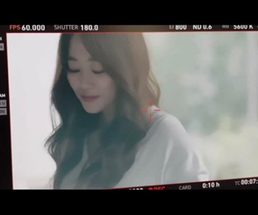 공개된 사진 속에는 흰색 블라우스를 차려 입은 그가 광고 촬영에 집중하고 있는 모습이 담겼다.