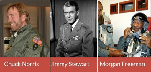 일단 위 퀴즈의 정답은 가수 엘비스 프레슬리다. 그런데 눈길을 끄는 건 엘비스 프레슬리가 공군이 아니었다는 점보다 척 노리스, 지미 스튜어트, 그리고 모건 프리먼이 모두 공군 출신이란 점이다.