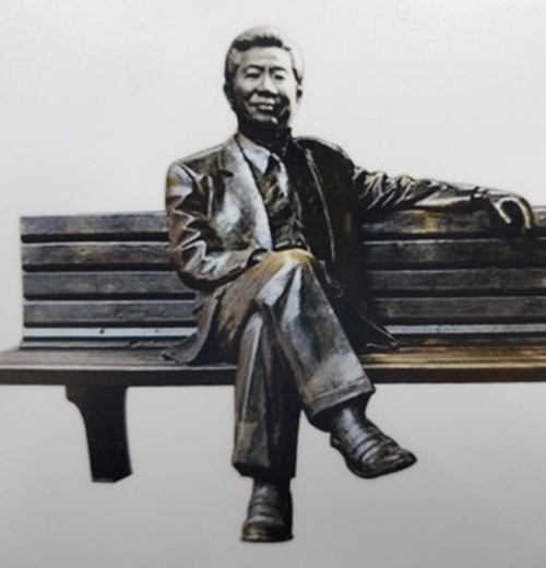 청동으로 된 동상은 동문인 도호선 작가가 디자인하고 제작했다.