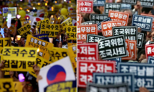 문 대통령은 이날 3주 만에 열린 청와대 수석·보좌관회의에서 조국 법무부 장관을 둘러싸고 진영 간 세대결 양상으로 치러진 서울 광화문·서초동 집회와 관련해 처음으로 입장을 밝혔다. 문 대통령의 발언은 국민 개개인의 의견 표출이 도가 지나쳐 보혁대립 양상으로 비치는 데 대한 우려를 표명한 것으로 해석된다. 그러면서도 “국론 분열이라고 생각하지 않는다”고 못박았다. 특히 “다양한 의견 속에서도 하나로 모아지는 국민의 뜻은 검찰의 정치적 중립 보장 못지않게 검찰 개혁이 시급하고 절실하다는 것”이라며 “정부와 국회 모두 이 목소리에 귀를 기울여야 할 것”이라고 주문했다. 조 장관 수호와 검찰 개혁을 부르짖는 서초동 집회를 염두에 둔 것으로 보인다.