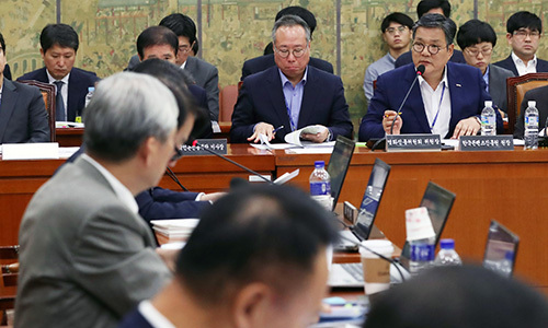 김영준 한국콘텐츠진흥원장이 17일 오전 서울 여의도 국회에서 열린 문화체육관광위원회의 한국콘텐츠진흥원, 한국문화예술위원회, 한국출판문화산업진흥원, 영화진흥위원회 등에 대한 국정감사에서 질의에 답하고 있다.