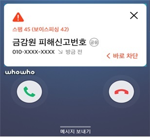 이에 따라 ‘후후’ 앱을 사용하는 스마트폰으로 전화나 문자메시지를 받으면 금감원에 보이스피싱으로 신고된 번호일 경우 ‘금감원 피해신고번호’라는 안내 메시지가 나온다.