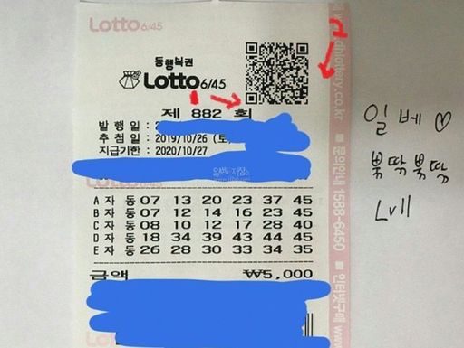 이와 함께 첨부된 사진 속 복권은 전날 발표된 882회 로또의 1등 당첨번호와 네 번째줄에서 번호가 일치했다.
