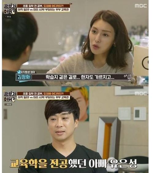 8일 방송된 MBC ‘공부가 머니?’에서는 김정화 유은성 부부가 출연해 예비 초등생 아들에 대한 교육 고민을 나누는 모습으로 꾸며졌다.
