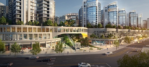 단지 저층부는 이태원과 인접하고 외국대사관이 모여있는 이국적인 분위기의 지역성을 반영하여 유럽 고건축의 디자인을 현대적으로 재해석, 수려한 곡선의 아치와 회랑을 차용한 디자인 요소를 사용하였으며, 고층의 주동에는 유리커튼월과 알루미늄패널 등을 사용한 미래지향적인 디자인으로 원경에서 바라보았을 때, 대한민국의 중심으로서의 절대적인 상징성을 전달하고자 한다.