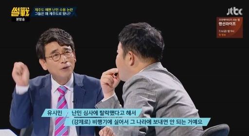 이 전 최고위원은 2018년 6월28일 썰전 275회에서 유시민 이사장이 한 '난민 심사에 탈락했다고 강제로 비행기에 실어서 그 나라에 보내면 안된다'라는 발언을 소개한 뒤 "난민은 그냥 자기나라로 돌려보내면 안되는데 문재인 정부는 안대를 하고 포승줄로 포박한 상태로 5일만에 헌법상 우리 국민인 탈북자를 강제로 북송했다"고 지적했다.