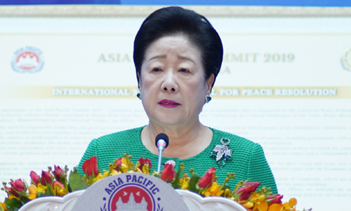 세계평화통일가정연합 한학자 총재는 19일(현지시간) 캄보디아 총리실 프놈펜 평화궁에서 개최된 ‘2019 아시아·태평양 서밋’ 기조연설에서 “아시아·태평양 문명권 시대는 과거와 달리 하늘에 대한 효정의 마음으로 인류를 위하여 사는 참사랑을 실천해야 한다”고 강조했다. 한 총재는 “예수님의 본질은 이웃을 내 몸 같이 사랑하는 것이었는데, 그 본질을 몰라 대서양 문명권 시대는 빼앗아 오는 문명권이 되었다”며 이같이 밝혔다.