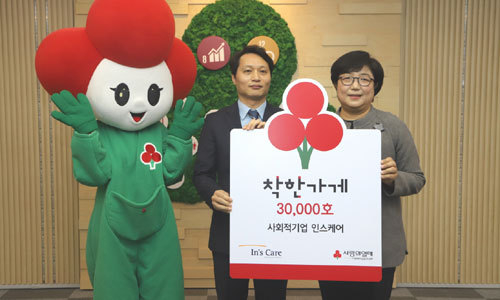 3만 번째 착한가게가 된 인스케어코어는 2010년 설립돼 노동소외계층에게 양질의 일자리를 제공해 건강한 자립을 돕고 지역사회 통합과 사회공헌을 사업 목적 중 하나로 하는 사회적기업이다. 2011년 서울형 사회적기업에 지정된 바 있고 2013년 고용노동부 사회적기업 인증을 받았으며, 2015년엔 서울시 혁신형사회적기업에 선정되기도 했다. 전국 주요 대도시를 포함해 지점 16곳을 보유한 인스케어코어는 그간 노숙인에게 일자리를 제공해 자립 기회를 주는 잡지 ‘빅이슈’와 국제 비정부기구(NGO) ‘세이브더칠드런’ 등에 정기적으로 기부해왔다. 사랑의열매 김연순 사무총장은 “착한가게 3만호에 동참해주신 인스케어코어에 감사하다”며 “인스케어코어는 과거 사랑의열매 서울지회의 배분기관으로 함께한 인연이 있다. 배분 파트너에서 기부자로 다시 만나게 돼 더욱 뜻깊다”고 말했다.