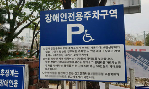 장애인 주차구역 불법주차는 적발되면 과태료 10만원이 부과된다.